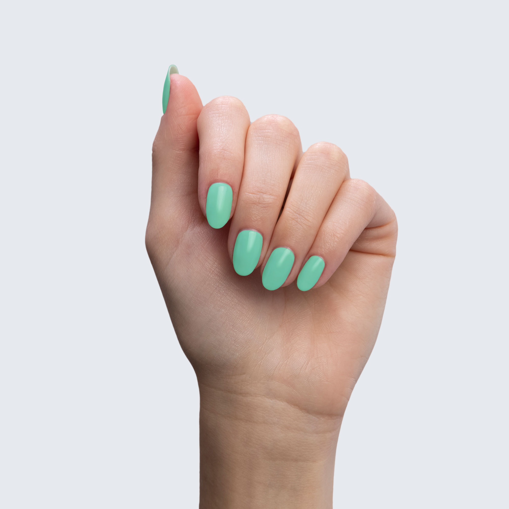 Seafoam green. Light. Bright. Opaque. Cool undertone.