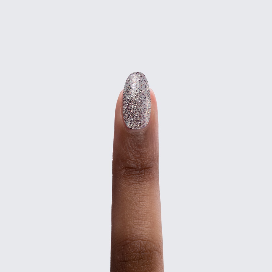 The rose gold glitter of this super shimmery, translucent polish always tells it like it is.